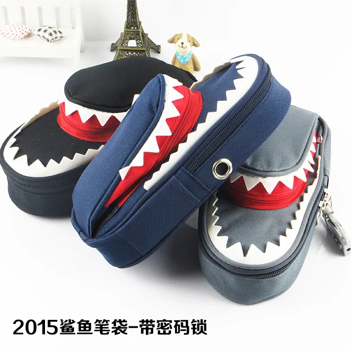 Мальчики Девочки личности Канцелярские Творческий Акула Большой Ёмкость холст школьный пенал карандаш сумка пенал с кодовым замком