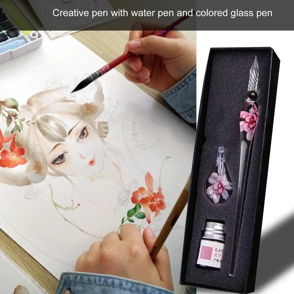 Стекло Dip кристалл ручка подписи Чернила внутри цветок для письма художественное украшение прозрачный авторучка золотые пастельные чернила подписи