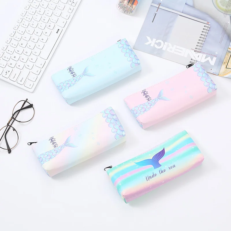Чехол для ручек из искусственной кожи, милый чехол для карандашей с русалочкой, большая емкость, сумка для ручек на молнии для детей, подарок...