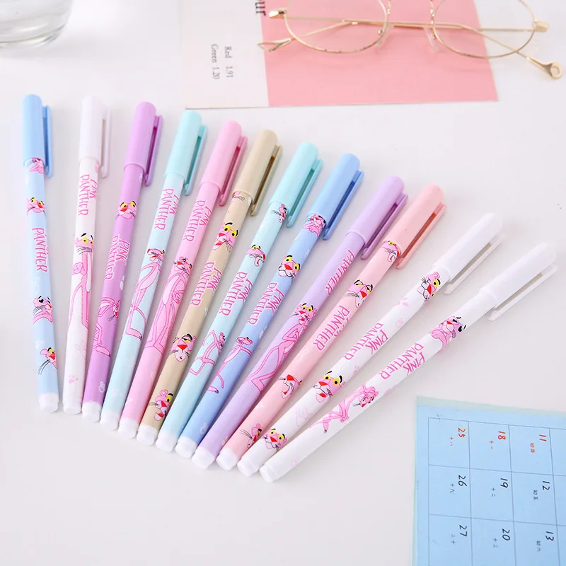 4 шт./партия Розовая пантера гелевая ручка милые 0,5 мм черные чернила ручки для подписи для письма школьные принадлежности канцелярские прин...