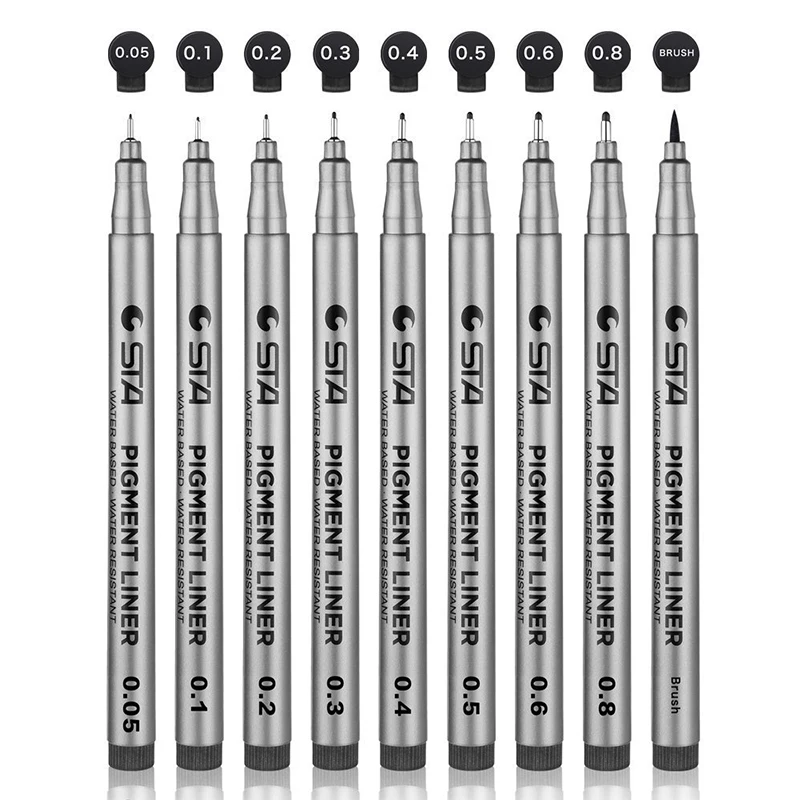9 шт./лот различные размеры наконечника черный пигмент лайнер на водной основе художественный маркер ручка для рисования рукописные принадлежности Канцтовары