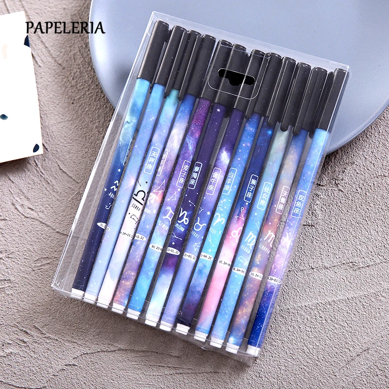 12 шт./компл., каваи, ручка 0,5 мм, созвездие, гелевые ручки, милый звездный свет, черная основа, ручки для офиса, канцелярские принадлежности для студентов, подарок