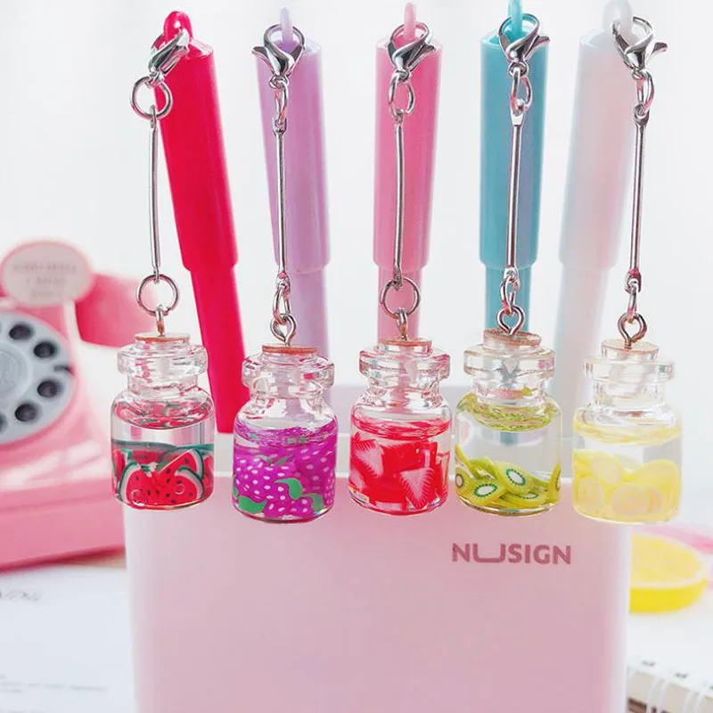 2 шт./компл., прекрасные 0,5 мм гелевые ручки для фруктов, подвеска в виде бутылочки желаний, фирменная ручка, нейтральная ручка, подарки для девочек, школьные канцелярские принадлежности