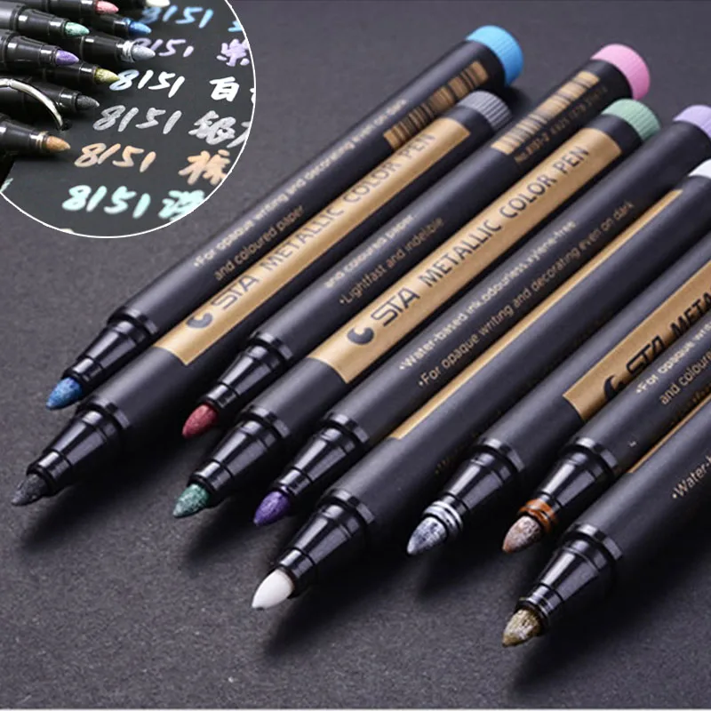 1 шт. Творческий Красящие ручки металлик Цвет ручка Технология золото и серебро 1,5 мм до Красящие ручки студент поставок маркер ручка для рук...