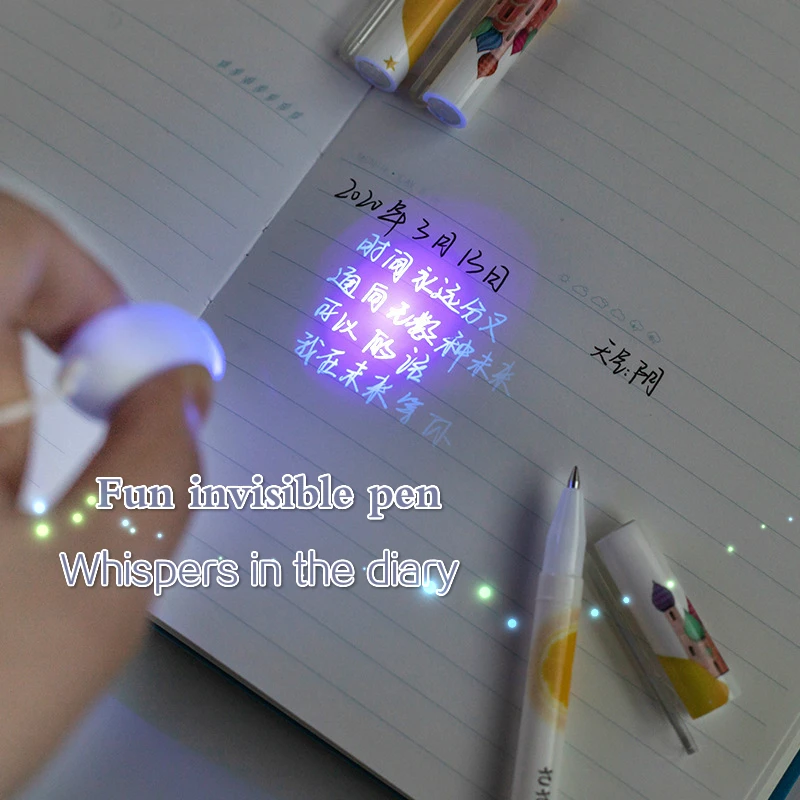 2 шт. + УФ-светильник, забавный набор секретных ручек, гелевая ручка для скрытого письма, невидимая чернильная ручка, персонализированные креативные канцелярские принадлежности