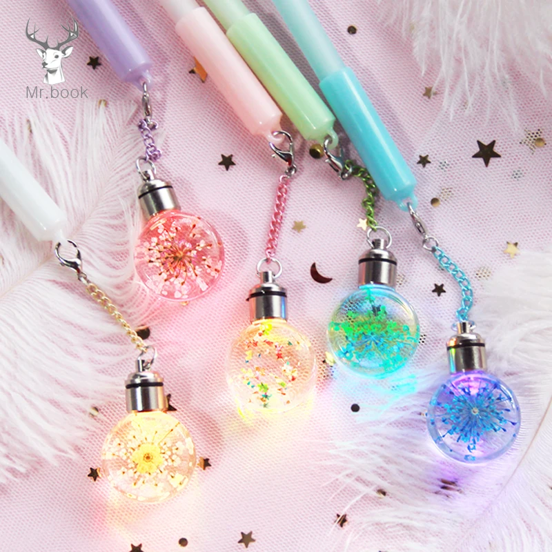 Гелевая ручка милые конфеты цвет сушеные цветы кулон с цвет ful Light Pen Multi-function 0,5 мм черные чернила лампы ручка подарки