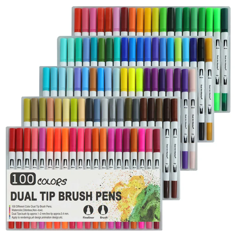 100 шт. цвет кисточки Маркер ручки двойной Совет Цветная кисть Ручка 0,4 Fineliner точка книги по искусству маркеры набор рисования манга канцелярс...
