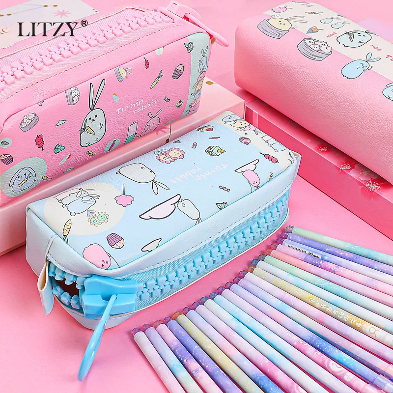 Большой чехол-карандаш на молнии, кавайный чехол-карандаш с кроликом и пандой, s для мальчиков и девочек, канцелярские товары, Большая вмести...