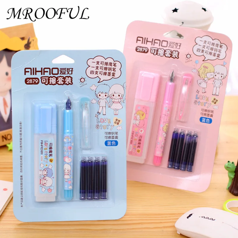 Милый каваи стираемая перьевая ручка наряд с 4 шт. чернильный мешок и ластик для детей подарок школьные офисные принадлежности корейские канцелярские принадлежности
