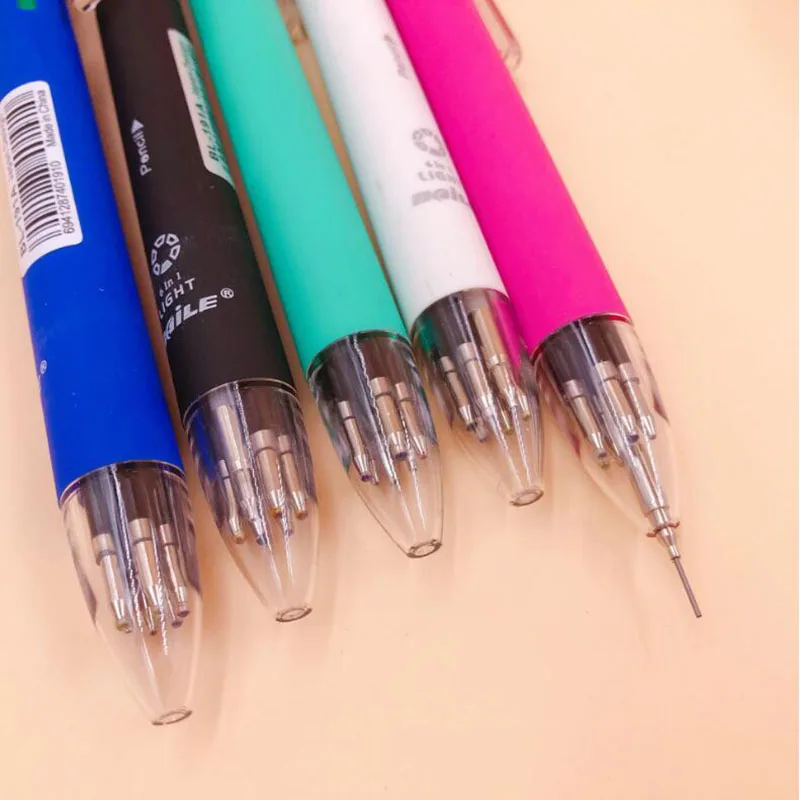 Мульти-Функция ручка пять-цветная шариковая ручка черный/синий/зеленый/красный/фиолетовый Шариковая ручка 0,7 мм + 0,5 мм, платье-карандаш для ...