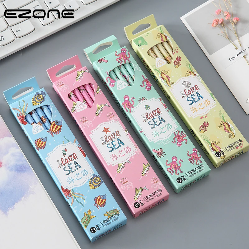 EZONE, 12 шт., деревянный карандаш, деревянный, с рисунком, для студентов, с рисунком, ластик, карандаш, детский, нетоксичный, канцелярские принад...