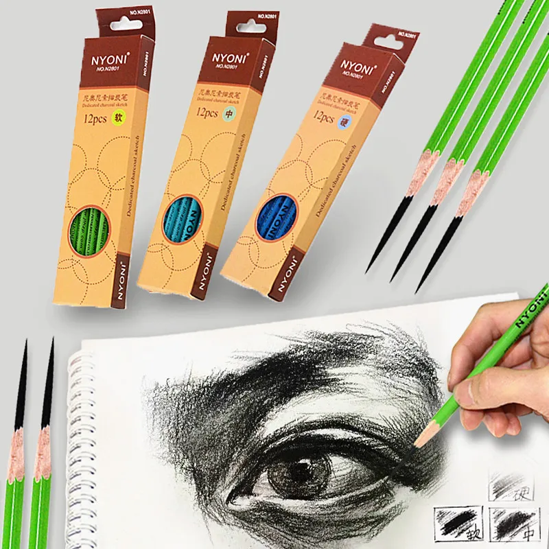 6 шт. профессиональный карандаш для набросков, N-2801 для рисования, углеродная ручка, мягкая средняя жесткая манга, принадлежности для рисования
