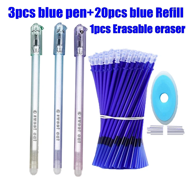 Гелевая ручка с синими чернилами, стержень со стираемыми чернилами, 24 шт./компл., 0,5 мм, стираемая ручка, школьные канцелярские принадлежности для письма, гелевые чернила для кошек
