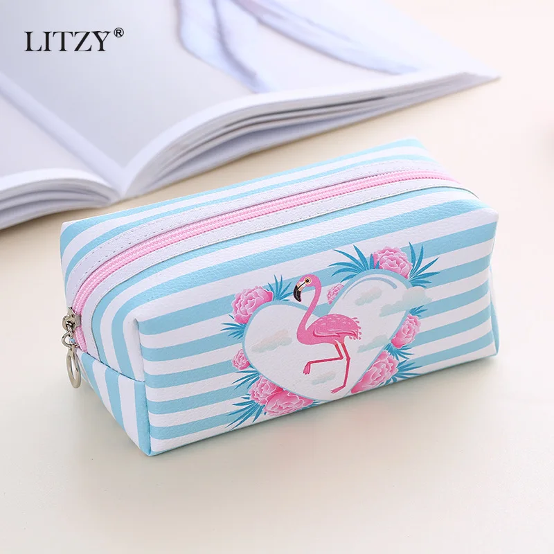 Фламинго Пенал школьный милый холст большой мешок карандаша коробка для девочек косметической сумка, школьные принадлежности Пенал для ка...