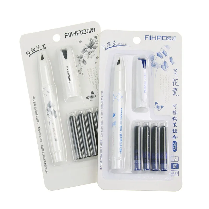 Милые Kawaii фарфоровые с орхидеями, пластиковая стираемая перьевая ручка с чернилами для письма, корейские канцелярские принадлежности