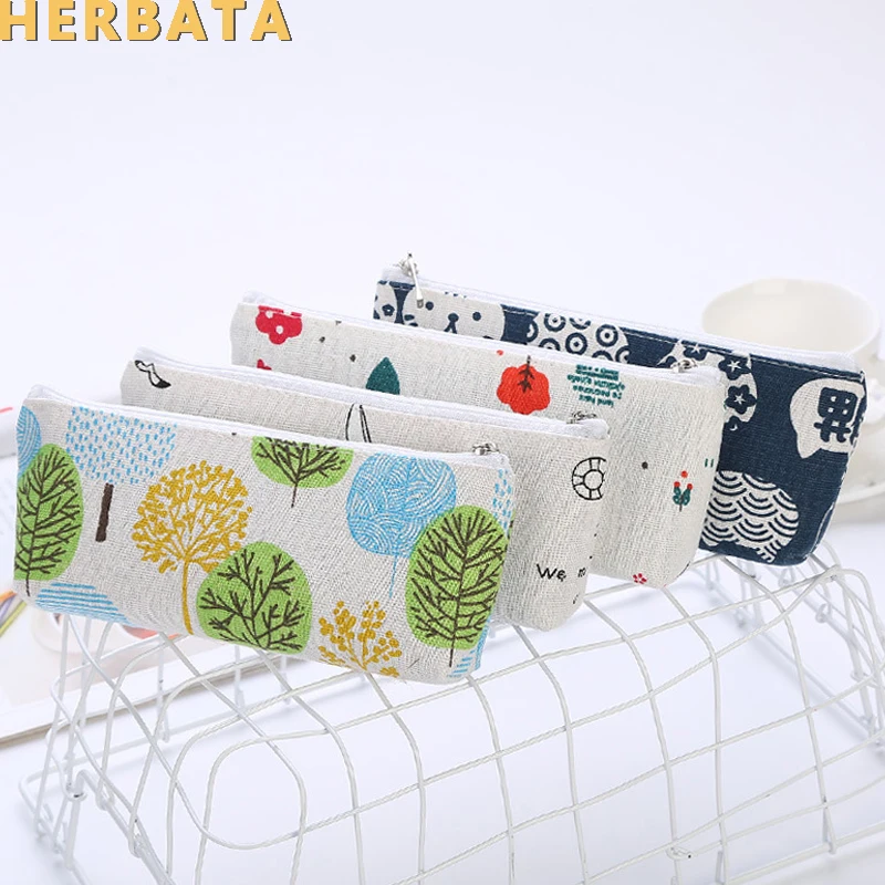 Мультяшный креативный квадратный чехол-карандаш из хлопка и льна ручной работы, простая тканевая Студенческая сумка для канцелярских принадлежностей, чехол-карандаш