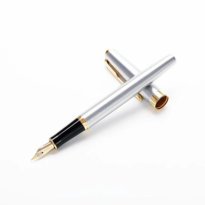 BAOER 388 Классическая Ручка-перьевая ручка из нержавеющей стали для бизнеса, Средняя Ручка-перьевая ручка, новая серебристая, золотистая отделка, M чернильная ручка-наконечник для перьевых ручек