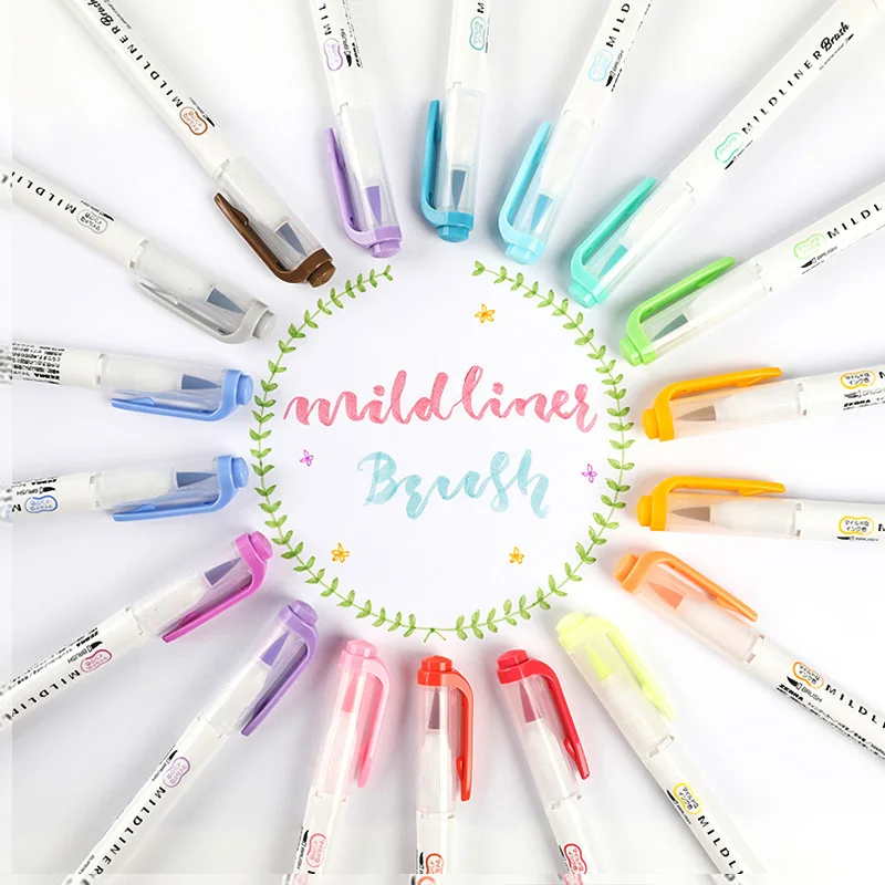 Мягкий лайнер, двухглавый маркер, ручка, кисть, японский канцелярский товар, детский цветной маркер для рисования, ручка, школьные офисные принадлежности