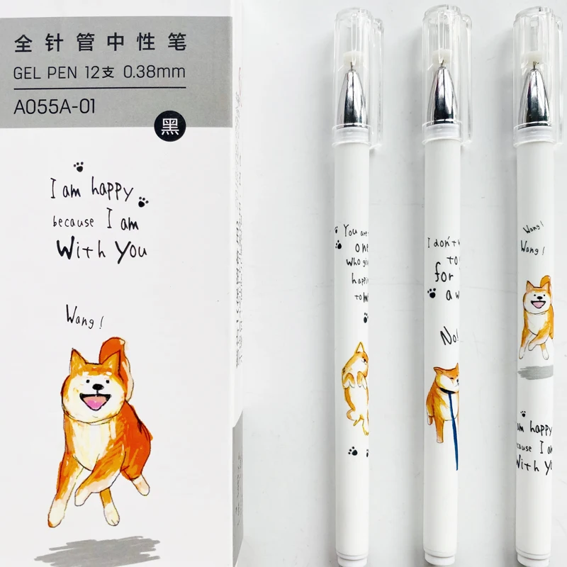 2 шт./лот Гелевая Ручка-роллер Kawaii с милой собачкой Шиба ину школьные канцелярские принадлежности 0,38 мм черные чернила