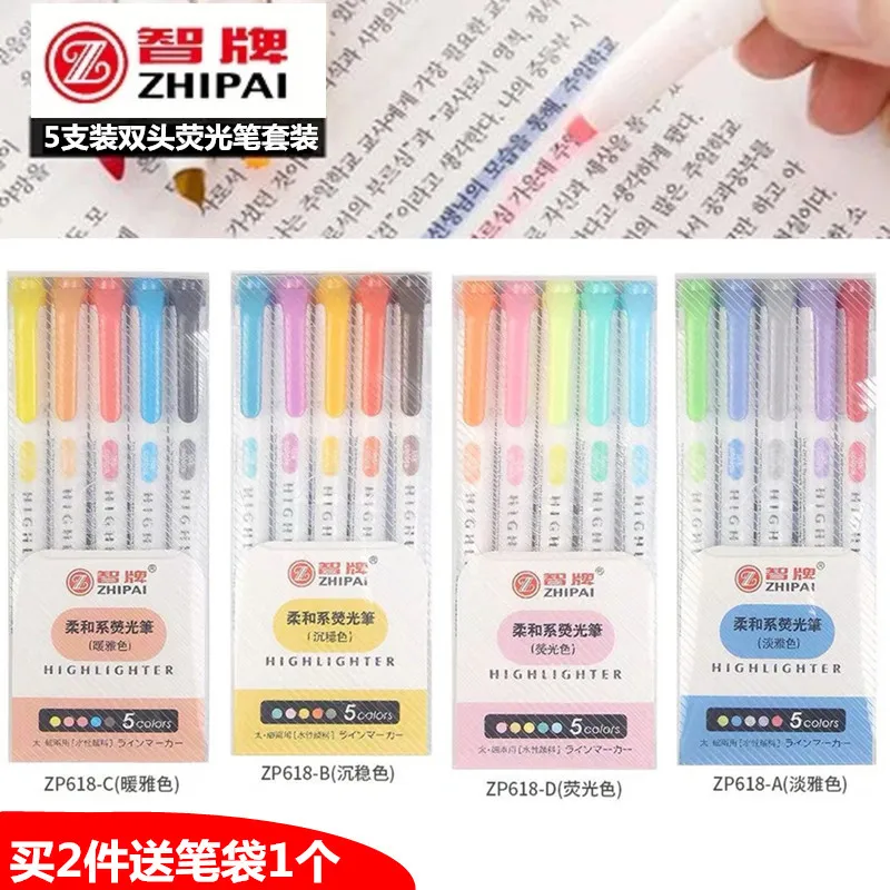 5 шт. ZHIPAI высокий светильник er светильник цветной серии двухголовый маркер цветной маркер Mildliner & Play color 2 высокий светильник ers для школы