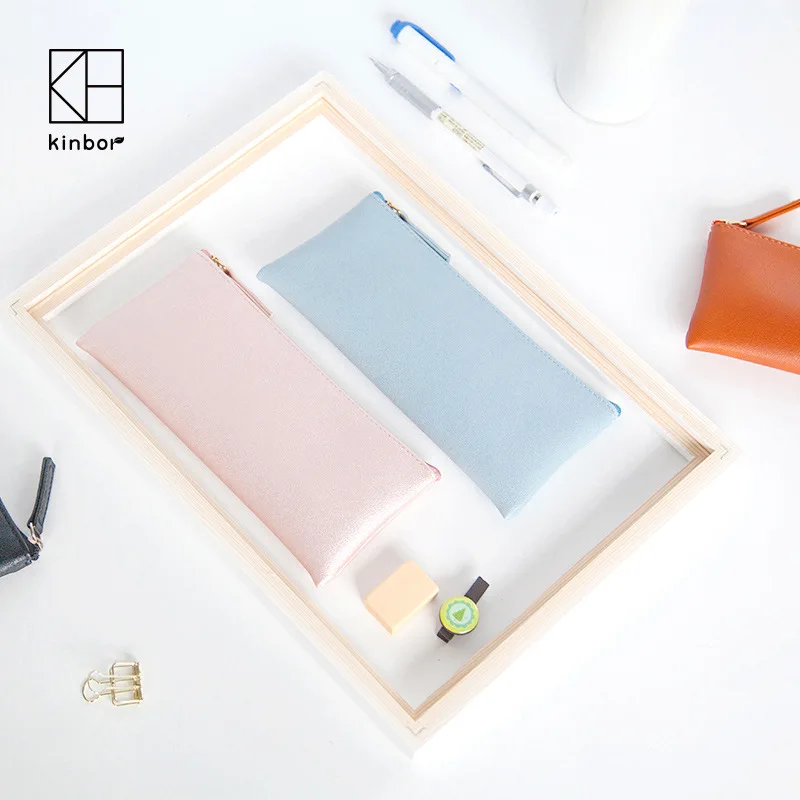 1 шт Классический ПУ пенал бизнес-стиль Макияж сумка ручка Сумка-черный, оранжевый, розовый, синий цвет школьные принадлежности