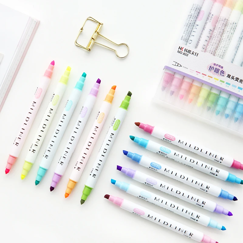 12 цветов/Набор Kawaii Mildliner ручки мягкий лайнер Highligher двойная двуглавая флуоресцентная ручка художественный Рисунок маркер ручка канцелярски...