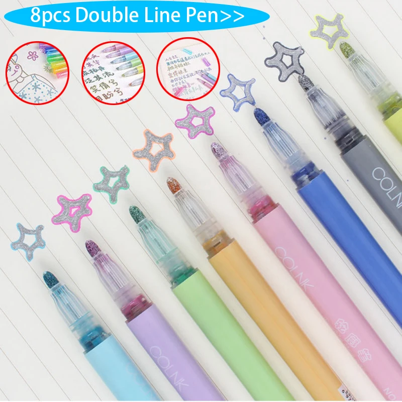 8 шт./лот, цветной, двойная линия, маркер, флуоресцентный маркер, конфетный цвет, Студенческая, многоцветная ручка для заметок, для школы, плак...