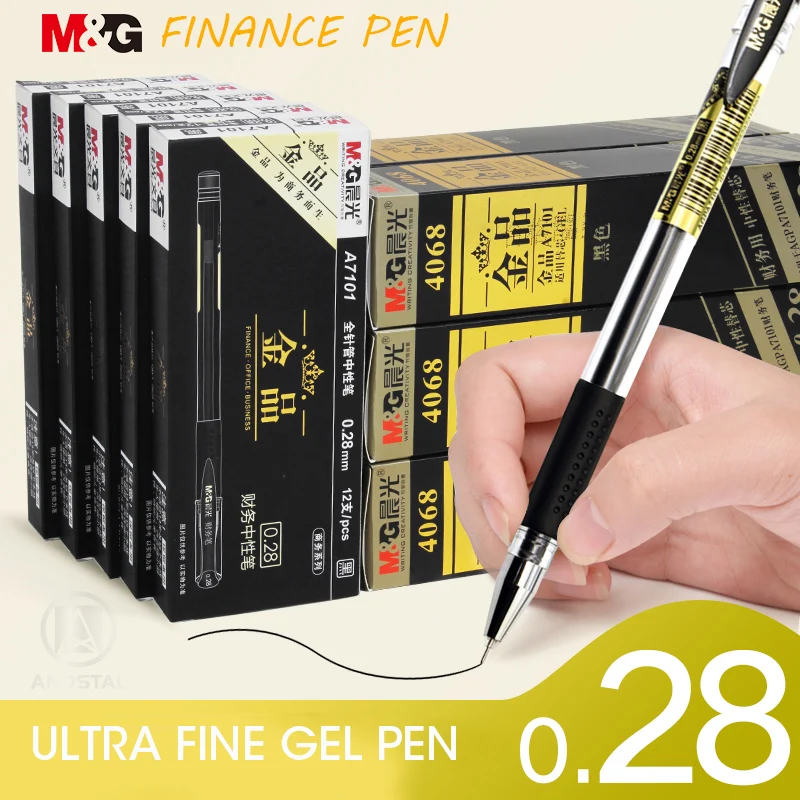 M & G 12 шт./лот 0,28 мм ультратонкие гелевые черные чернила для ручки, гелевые ручки для школы, офисные принадлежности, стационарные ручки, канцелярские принадлежности