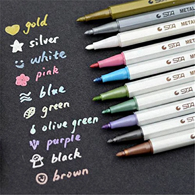 10 шт./лот STA металлик цветные чернила жидкий мелок для Записки фотоальбом Рисунок Акварель книги по искусству маркер гелевые ручки канцеляр...