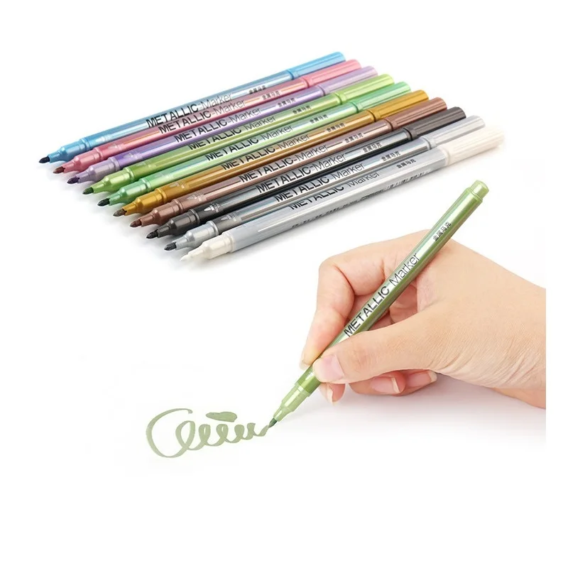 10 цветов Metaillic Микрон ручка Рисование маркер для obaque бумага Скрапбукинг книги по искусству кисточки цветные Канцтовары Школьные принадлежн...