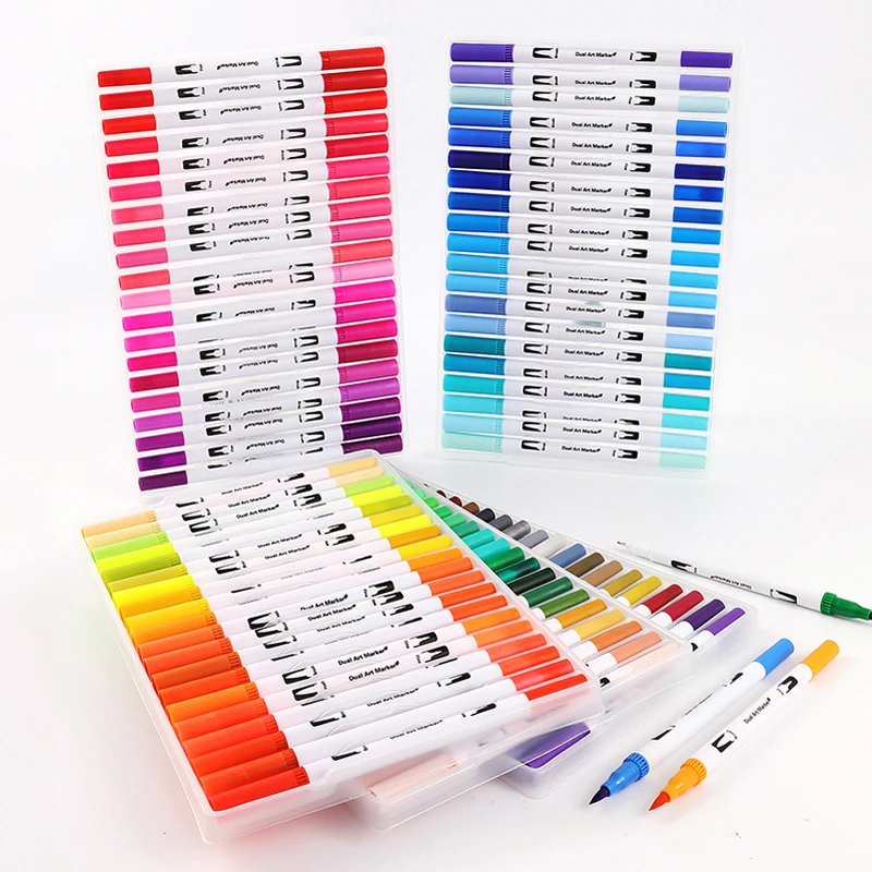 12/18/24/36/48/72/100 Цвета двойная щетка маркер для рисования с тонким и наконечник фломастеры для рисования канцелярские принадлежности