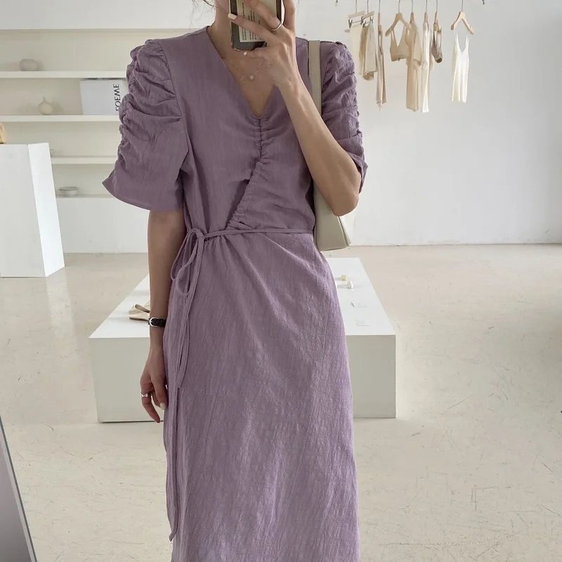 Женское платье с рукавами-фонариками Alien Kitty, с v-образным вырезом, элегантные вечерние платья Vinatge, лето 2020