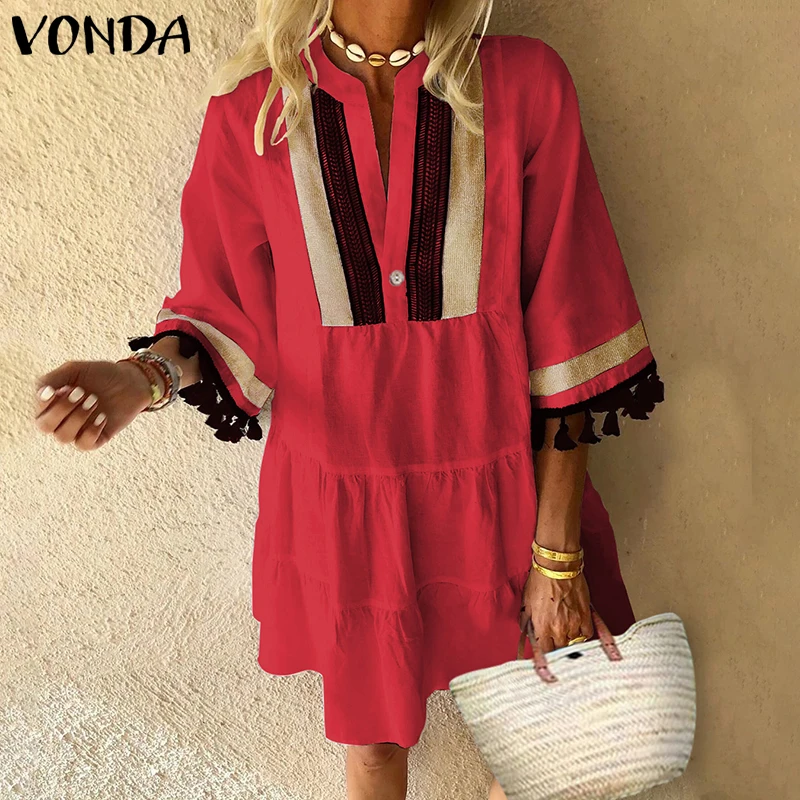 VONDA, летнее платье для женщин, винтажное, v-образный вырез, половина рукава, с принтом, вечерние платья, пляжный сарафан, 2019, богемное платье, Повседневное платье размера плюс