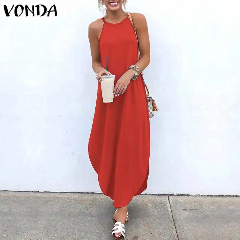 Летнее платье VONDA, пляжный сарафан для женщин, сексуальное, без рукавов, с открытой спиной, для вечеринки, длинное платье, 2020, повседневное, свободное, Vestido, плюс размер