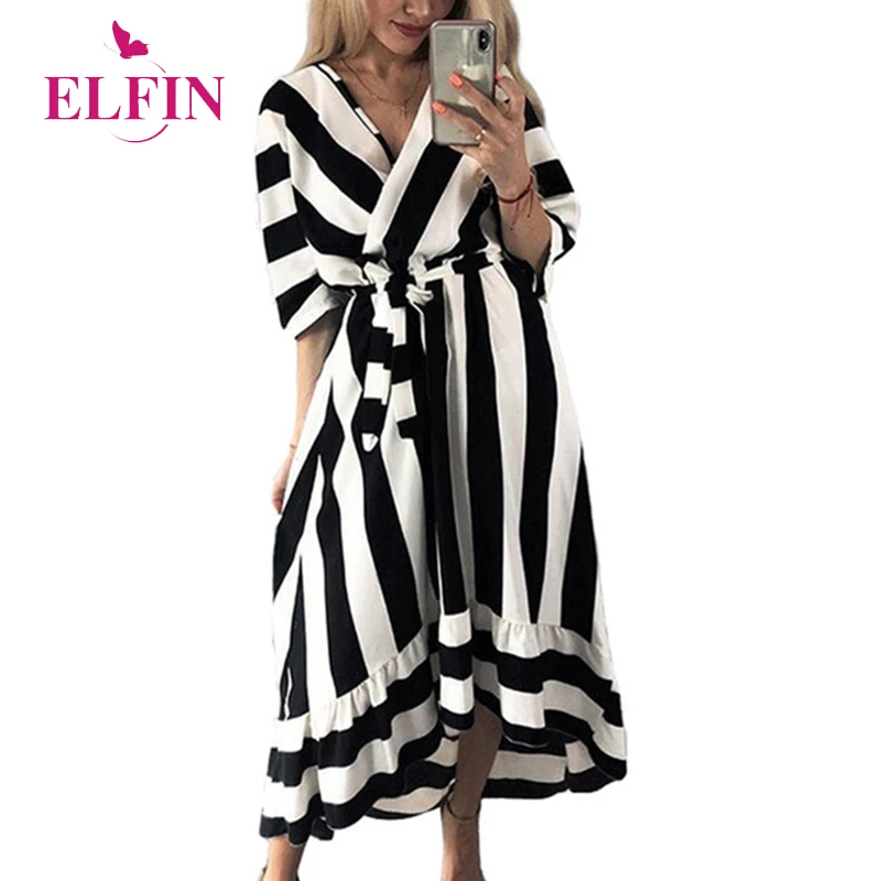 Летнее платье в полоску с коротким рукавом, платья для вечеринок, v-образный вырез, vestidos robe Femme, Пляжное черное платье, повседневная женская о...
