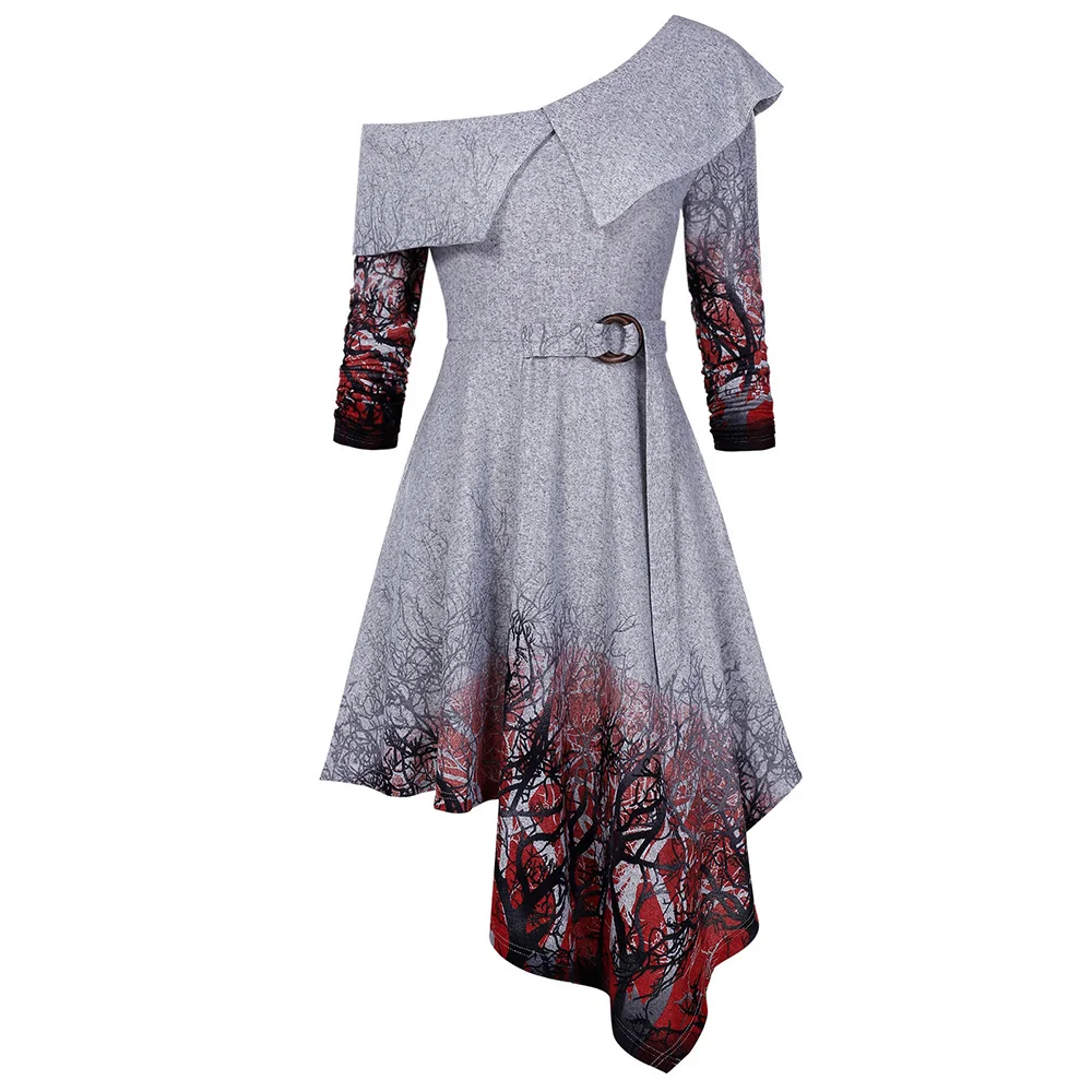 Винтажное платье с поясом, женское элегантное офисное трикотажное платье-Блейзер, платья с длинными рукавами и принтом дерева, женские вече...