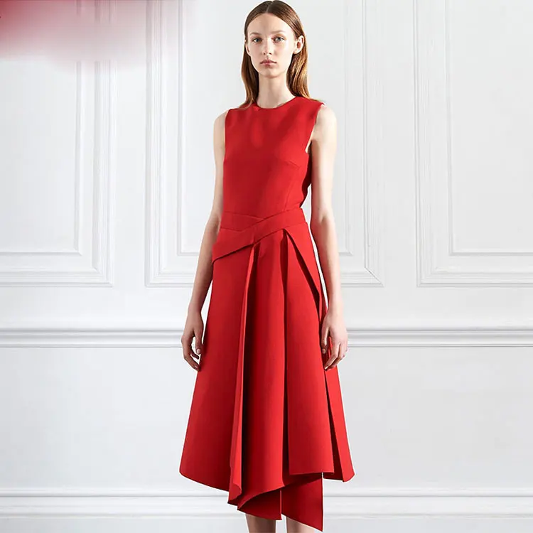 Hamalielновейшие дизайнерские брендовая одежда 2018 взлетно посадочной полосы Лето для женщин красный без рукавов женский элегантный тонкий веч...