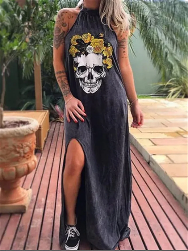 Женское длинное платье в стиле панк с 3D принтом черепа, повседневное свободное платье макси без рукавов в готическом стиле на лето 2020