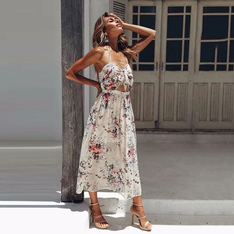 Богемное пляжное летнее платье Для женщин 2019 без рукавов с принтом длинное платье для девочек праздник на молнии пикантные вечерние клуб пл...