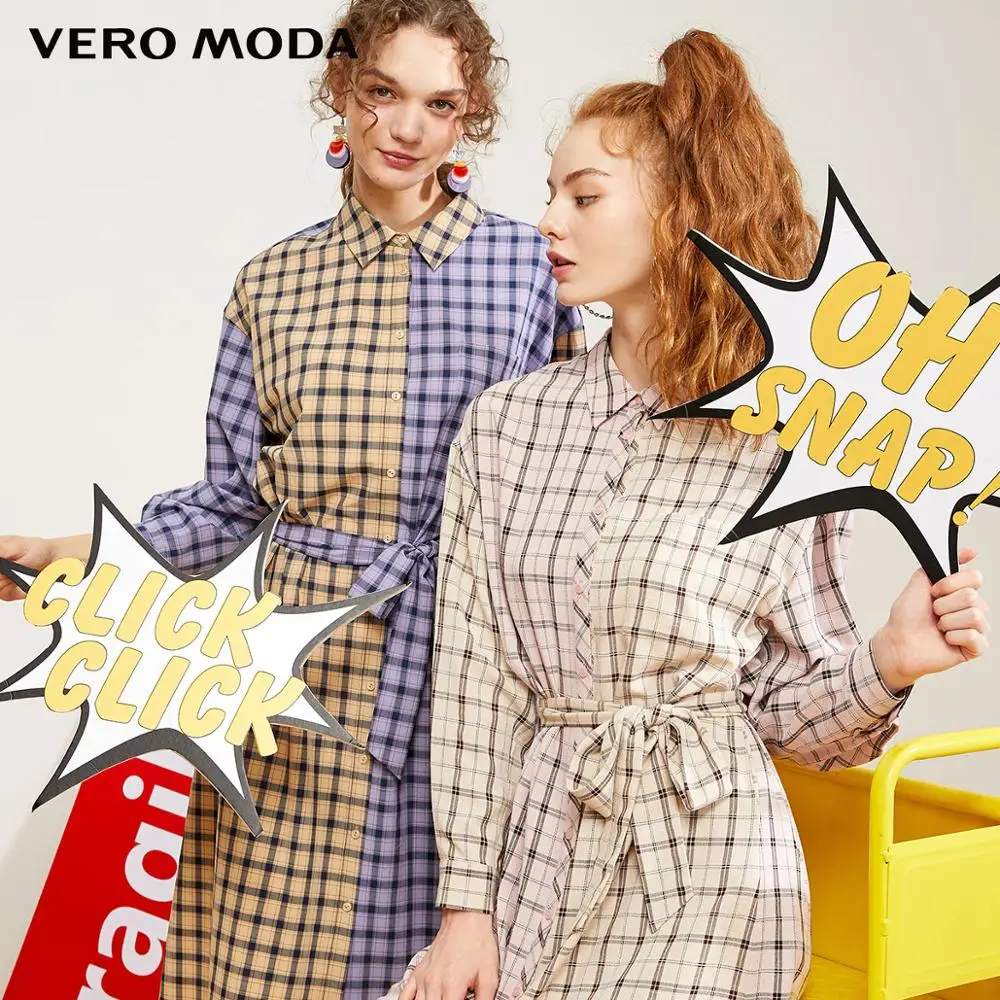 Vero Moda 2019 новое платье-рубашка в клетку с буквенным принтом и контрастными вставками | 31937D516