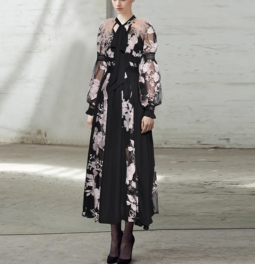 Женское платье Vestidos Новое 2019 весеннее Сетчатое лоскутное шифоновое платье для подиума Цветочная вышивка бант вечерние платье женская, с пе...