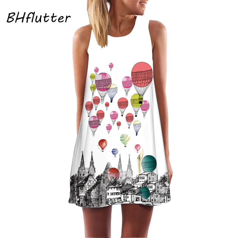 BHflutter Robe Femme Ete 2018 Платье женское Новое вечерние без рукавов с цифровым принтом летнее повседневное летнее шифоновое платье