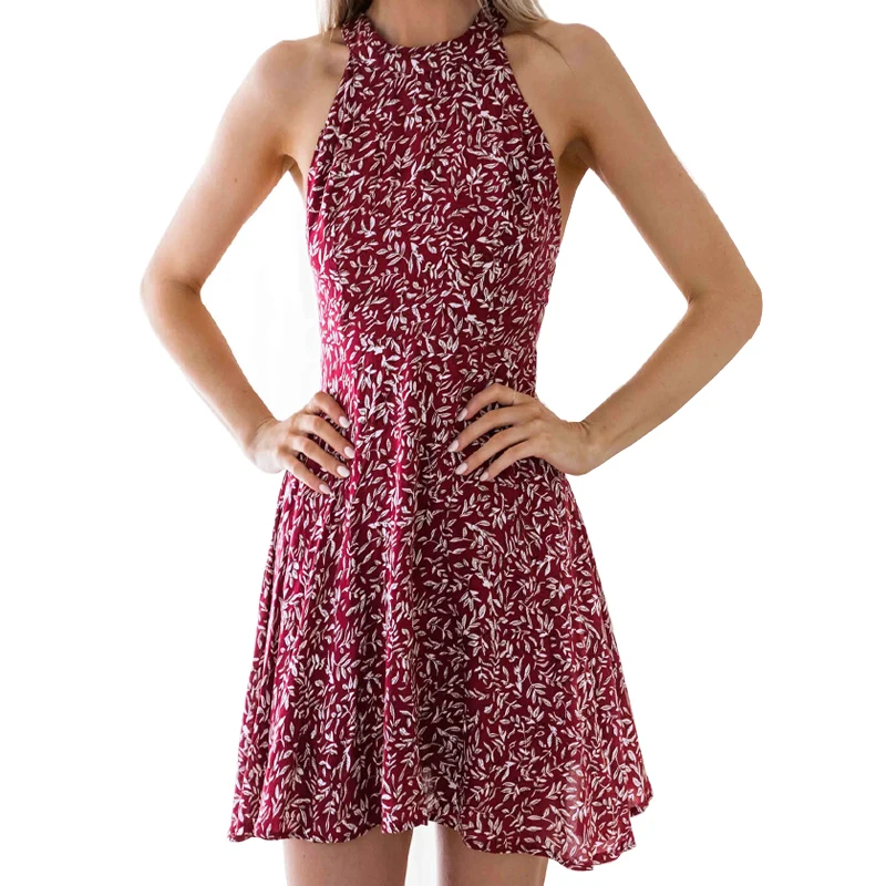 Пикантные Вечеринка платье с открытой спиной Для женщин Спагетти ремень Цветочный принт пляжные Стиль линия мини-платье в стиле бохо Плать...