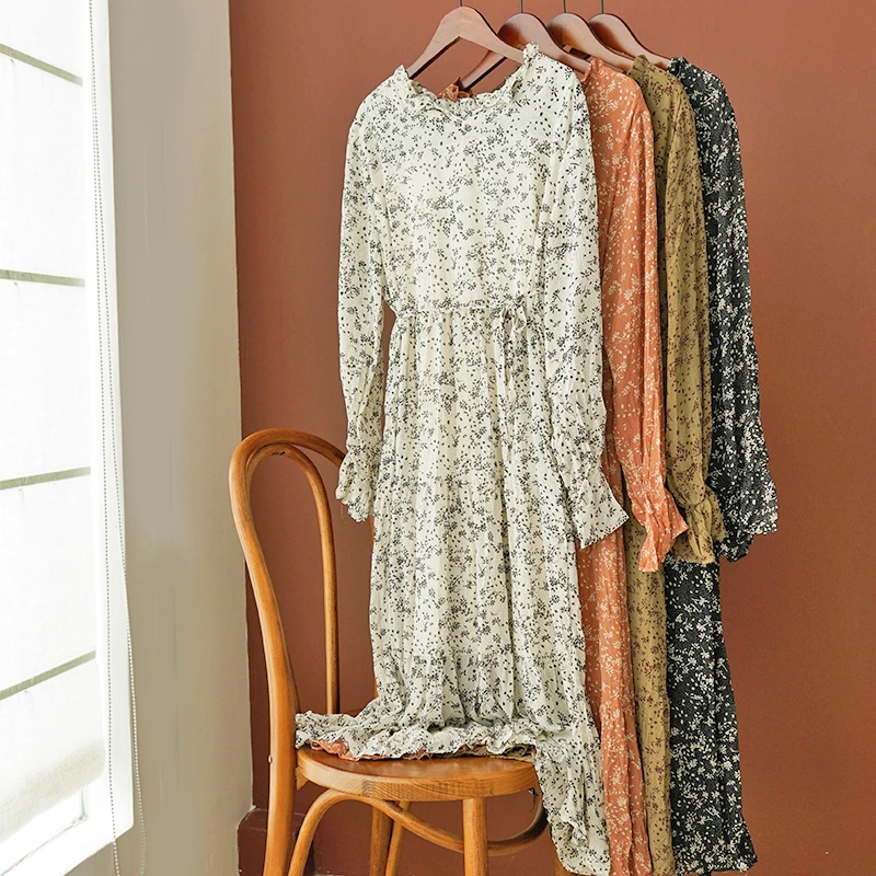 Летнее винтажное женское платье трапециевидной формы с цветочным принтом, повседневные платья с длинным рукавом до середины икры, корейское женское офисное платье с милым бантом