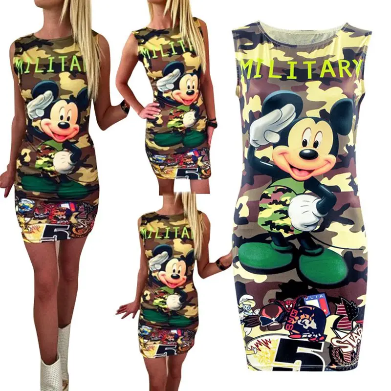 Летнее женское платье с милым круглым вырезом без рукавов с мультяшным принтом камуфляжное платье вечерние сексуальные вечерние женские п...
