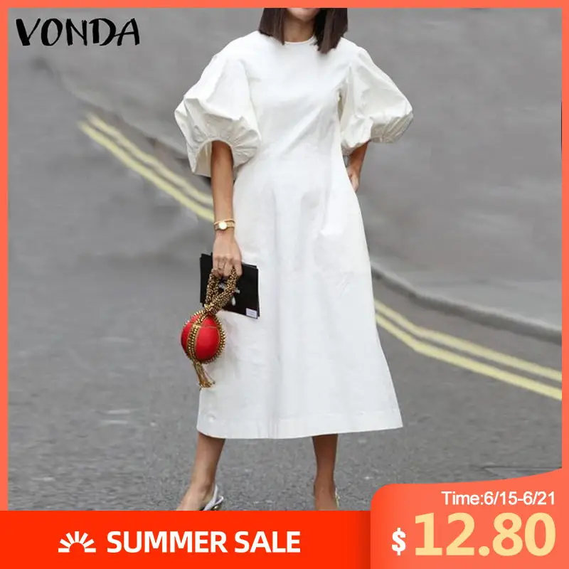 Женское свободное платье 2020 VONDA, летнее Повседневное платье с круглым вырезом и коротким рукавом-фонариком, длинные платья размера плюс, богемные вечерние платья Vestidos Femme 5XL