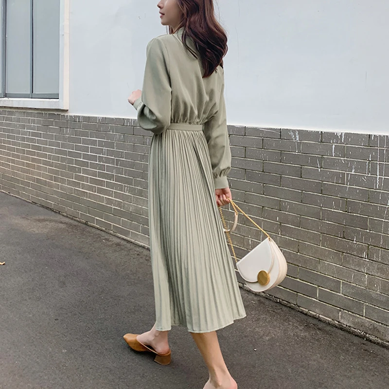 BGTEEVER винтажное однобортное женское платье трапециевидной формы с бантом на шее 2020 весеннее повседневное эластичное Плиссированное женское платье с высокой талией и поясом