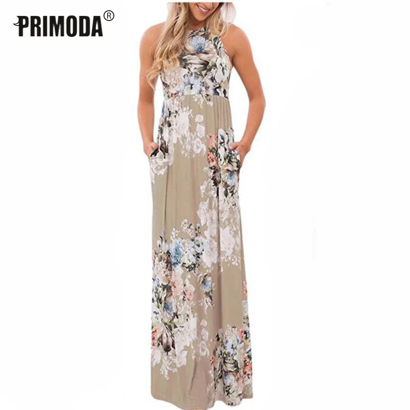 Женские богемные Макси длинное платье Цветочный принт Лето Для женщин сарафан Сексуальная рукавов платье на бретелях Повседневное пляжные...