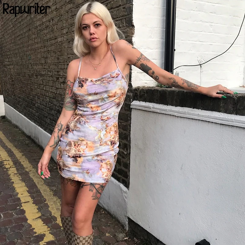 Rapwriter, повседневное, тонкое, с принтом ангела, на тонких бретелях, платье для женщин, весна 2018, базовое, без рукавов, Сексуальное мини платье, ...