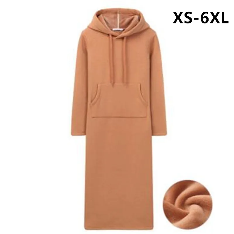 2019 Осенне-зимняя Дамская обувь флисовые худи Толстовка с карманом Повседневное платье с длинным рукавом, большие размеры S-5XL 6XL весеннее пла...